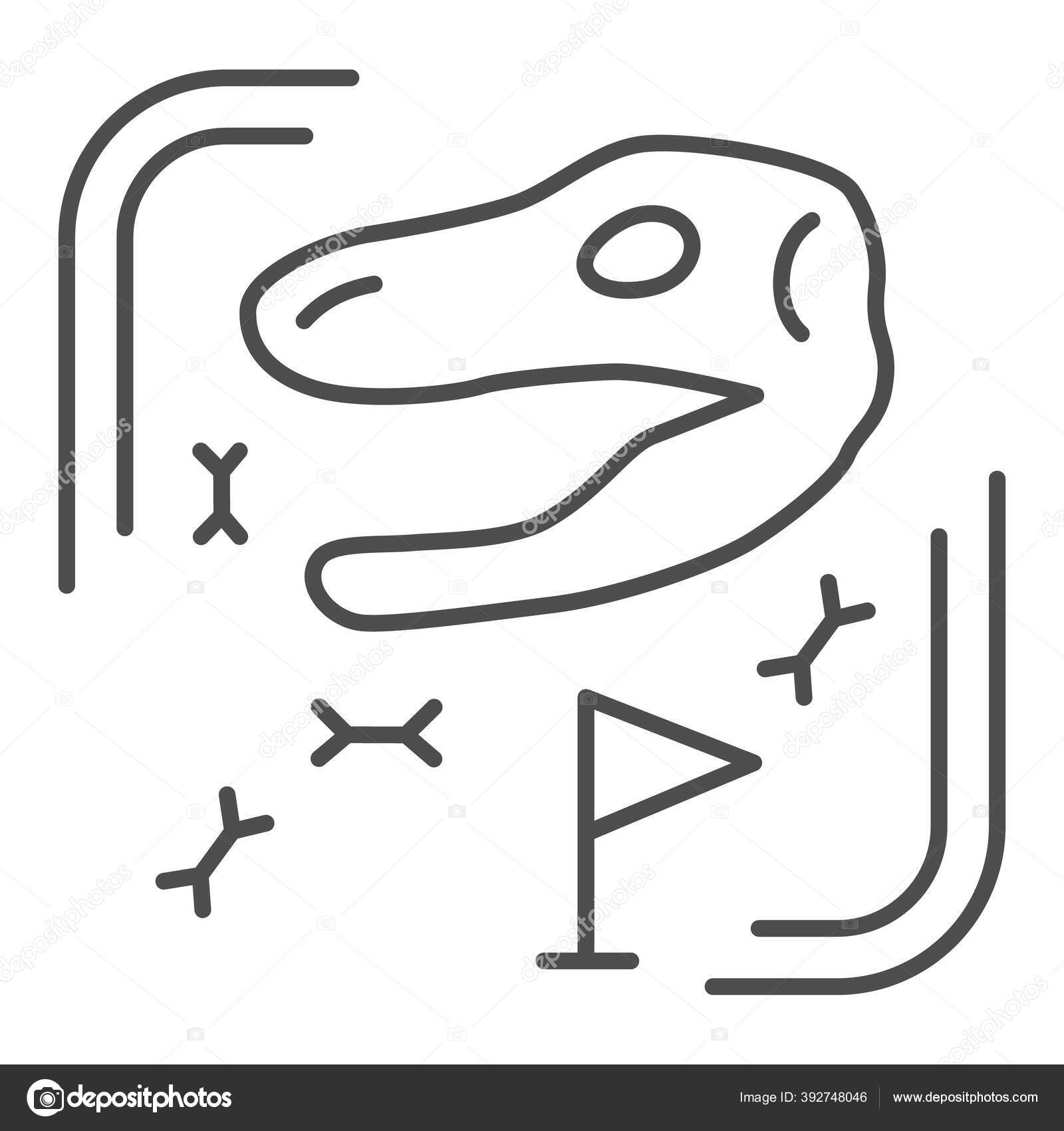 Ekskavasi Arkeologi Ikon Garis Tipis Konsep Paleontologi Fosil Yang Digali Dan Tulang Purba Ditandai Dengan Latar Belakang Putih Situs Penggalian Dengan Ikon Tengkorak Dinosaurus Dalam Garis Besar Grafik Vektor Stok Vektor C